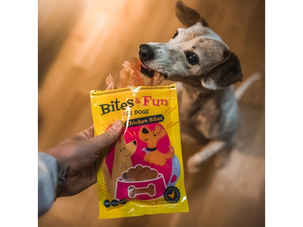 Οι Akinu BITES & FUN Chicken Bits είναι μικρά, νόστιμα κομματάκια κοτόπουλου, ιδανικά για επιβράβευση και εκπαίδευση του σκύλου σας. Η μαλακή και εύκολα μασώμενη υφή τα καθιστά κατάλληλα για σκύλους όλων των φυλών και ηλικιών, ενώ η πρακτική συσκευασία των 85g τα κάνει ιδανικά για καθημερινή χρήση.