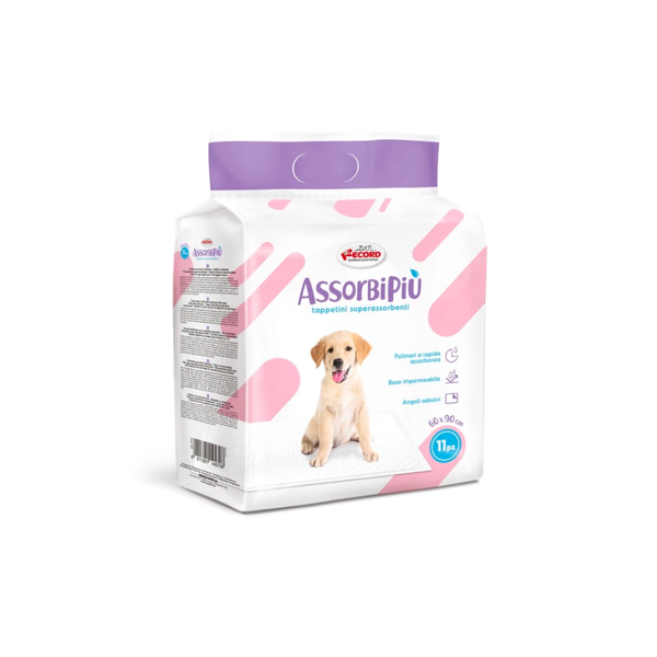 Οι πάνες Assorbipiù 60 x 60 cm, 11 τεμαχίων, διαθέτουν υπεραπορροφητικούς πολυμερείς για να διατηρούν τις πατούσες των σκύλων στεγνές, απορροφώντας τα ούρα. Είναι κατάλληλα τόσο για κουτάβια όσο και για ηλικιωμένους σκύλους, όταν υπάρχει περιορισμένος χρόνος για βόλτα ή κατά την εκπαίδευση.