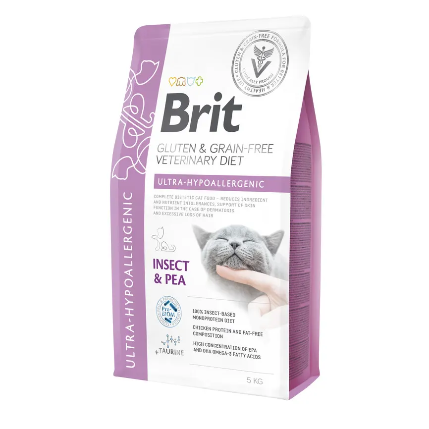 Η Brit VD GF Cat Ultra-Hypoallergenic 5gr είναι μια πλήρης κλινική διαιτητική τροφή για γάτες, ειδικά σχεδιασμένη για τη διαχείριση τροφικών δυσανεξιών, αλλεργιών και δερματολογικών προβλημάτων.