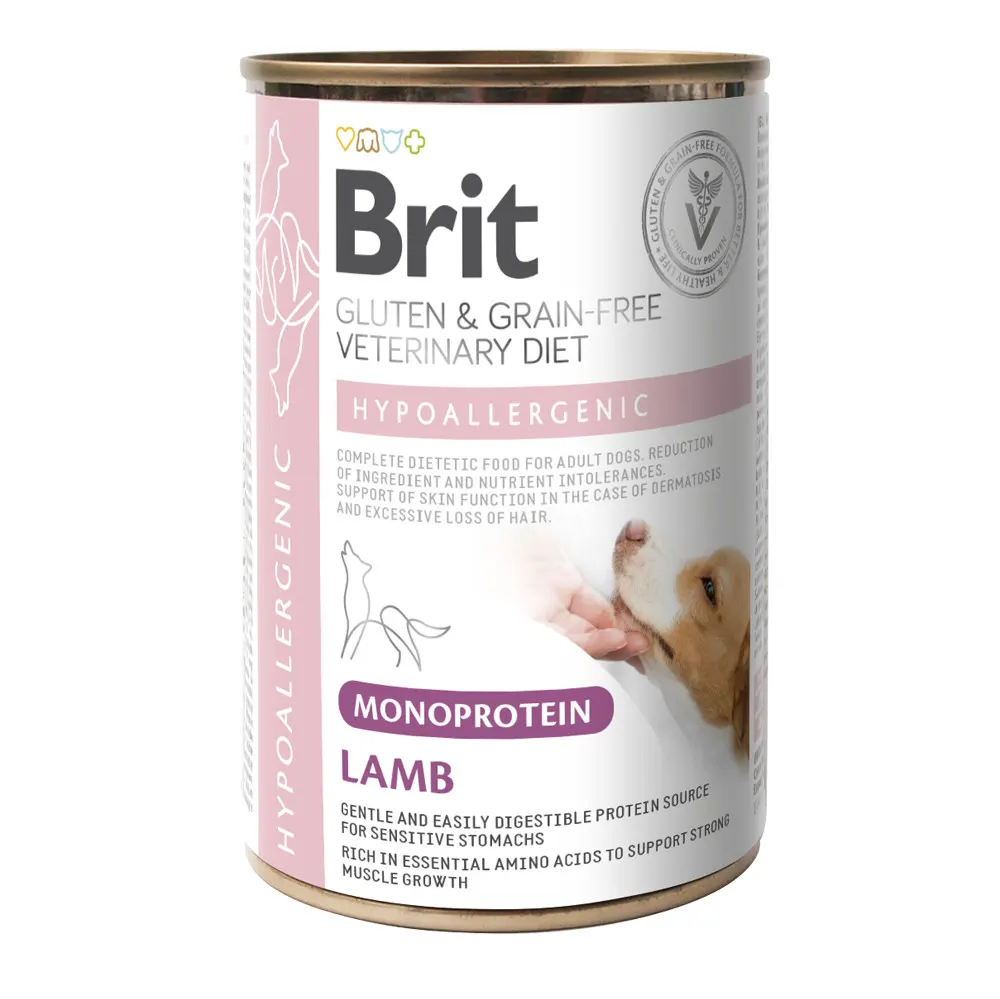 Η Brit VD GF Dog Hypoallergenic Monoprotein Lamb 400gr είναι μια πλήρης κλινική μονοπρωτεϊνική τροφή για σκύλους, ειδικά σχεδιασμένη για τη διαχείριση τροφικών αλλεργιών, δυσανεξιών και δερματικών προβλημάτων.