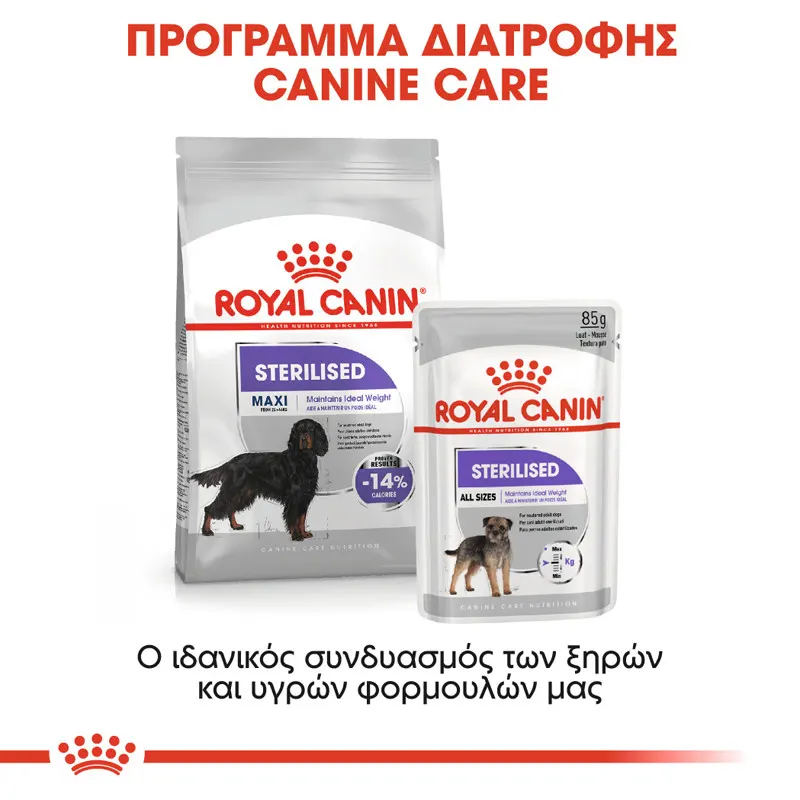 Η Royal Canin Maxi Sterilized Adult 3 kg είναι πλήρης ξηρά τροφή για στειρωμένους ενήλικους σκύλους μεγαλόσωμων φυλών (26-44 kg), άνω των 15 μηνών, με τάση αύξησης βάρους.
