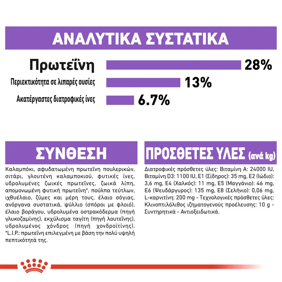 - Υποστήριξη μυϊκής μάζας: Υψηλή περιεκτικότητα σε πρωτεΐνη (28%)