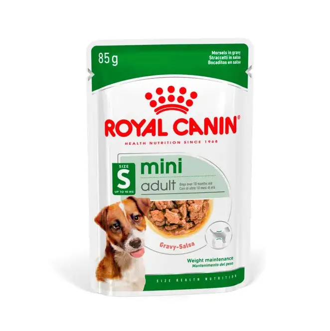 Η Royal Canin Mini Dog Adult Morsels in Gravy 85 gr είναι πλήρης υγρή τροφή για ενήλικους σκύλους μικρόσωμης φυλής (έως 10 kg) ηλικίας 10 μηνών έως 8 ετών. Σχεδιασμένη για διατήρηση ιδανικού βάρους, υγιή οστά και μυϊκή ανάπτυξη, καθώς και υγιές τρίχωμα και δέρμα.