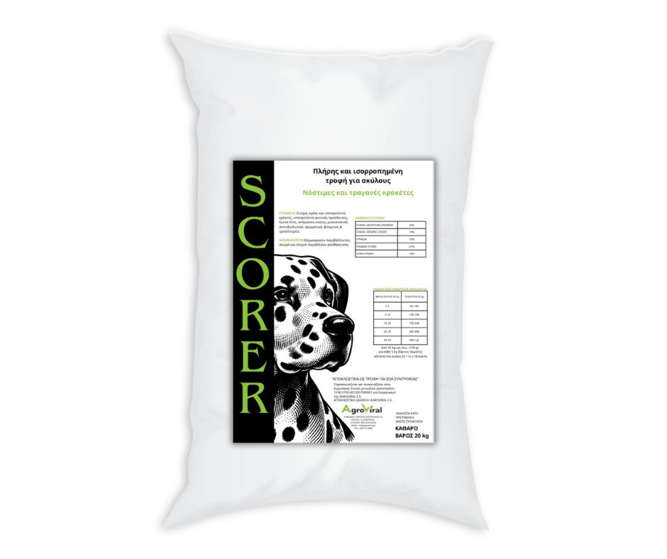 Ετικέτες: ξηρά τροφή σκύλου, δραστήριοι σκύλοι, ιδιοκτήτες σκύλων, τροφές για σκύλους, dry dog food, τραγανές κροκέτες, SCORER, 20 κιλά, dog kibble